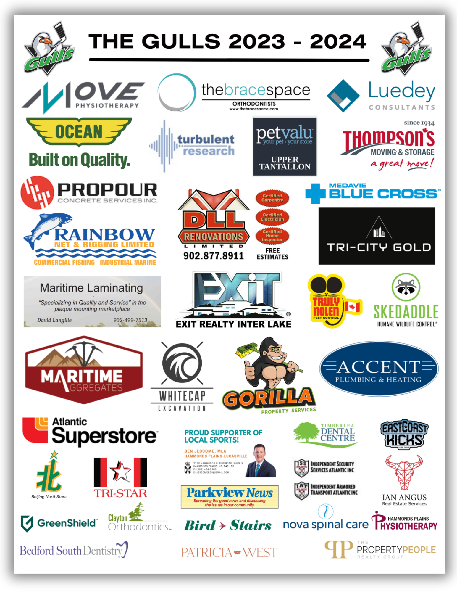 The Gulls would like to acknowledge the many local businesses supporting the team this season.  Please consider the brands and businesses showcased on our Gulls 2023-24 Banner as a token of appreciation for supporting player development.